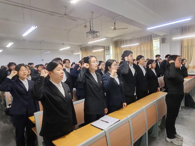 11月20日,学院党委举行2025年下半年入党宣誓仪式。27名新发展的预备党员、17名按期转正的正式党员和70余名新吸收的入党积极分子代表共同参加仪式。仪式由党委组织员、研究生党支部书记杨长振主持。