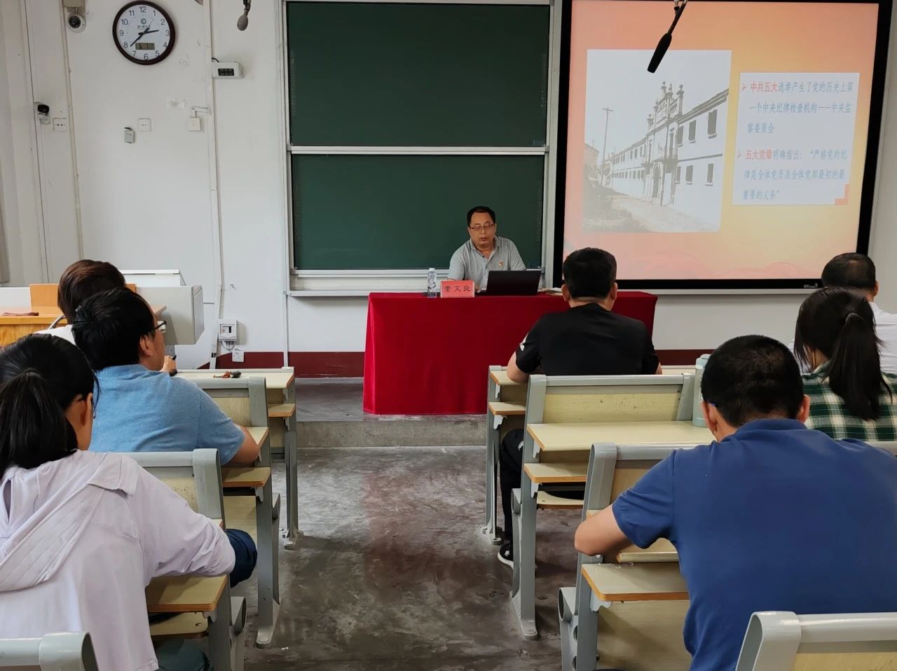 授课过程中,董文良以讲理论、讲条例、讲案例相结合的方式从“党的纪律建设史、二十大党章修正案关于纪律建设的新规定、《条例》修订的主旨要义、抓好《条例》的贯彻执行”四方面展开讲解。他强调身为党员要牢记嘱托,自觉学习党章、遵守党章、贯彻党章、维护党章,唤醒党章党规意识,用党规党纪校正思想和行动,才能在推动党和人民事业发展中充分发挥先锋模范作用。会后党员同志们纷纷表示,要将《条例》精神内化于心、外化于行,时刻保持敬畏之心,守住纪律底线,不越红线,切实以优良的纪律作风保障高质量发展,以更加饱满的热情和昂扬的斗志为推进党的自我革命、坚决打赢反腐败斗争贡献力量。