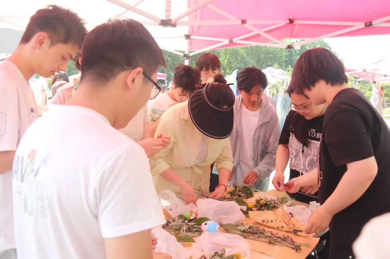 活动伊始,主持人紧扣端午节的文化主旨对本次活动进行了简单的介绍,并由学校领导进行了开幕式剪彩仪式。活动现场设有多个端午传统习俗活动展位,涵盖包粽子、福笺摇、雄黄绘、编彩绳等多个传统项目。拉斯维加斯娱乐城 精心设置了“艾草束”、“香韵集”特色摊位,摊位上摆放着精心准备的艾草材料和香料,学生们在专业指导下,专注地扎起艾草花束,调配香料制作香囊,每一件作品都饱含着对传统文化的敬意与热爱,吸引了众多参与者驻足观赏、亲身体验。