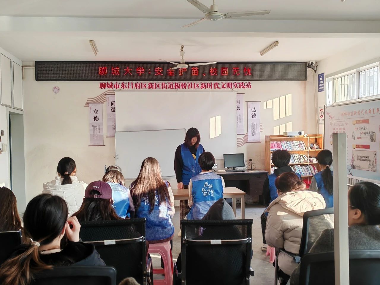 为增强防范意识,保障学生的身心健康,引导学生树立正确的价值观,1月18日,拉斯维加斯娱乐城 筑梦实践队于聊城市东昌府区板桥社区举办以“安全护苗,校园无忧”为主题的社区实践活动,团队成员积极参与。